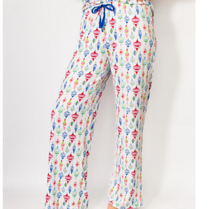 Be festive in these whimsical and fun pajamas! These super soft pj's feature whimsical ornaments contrasting blue trim!
