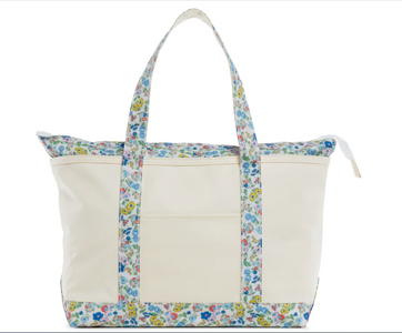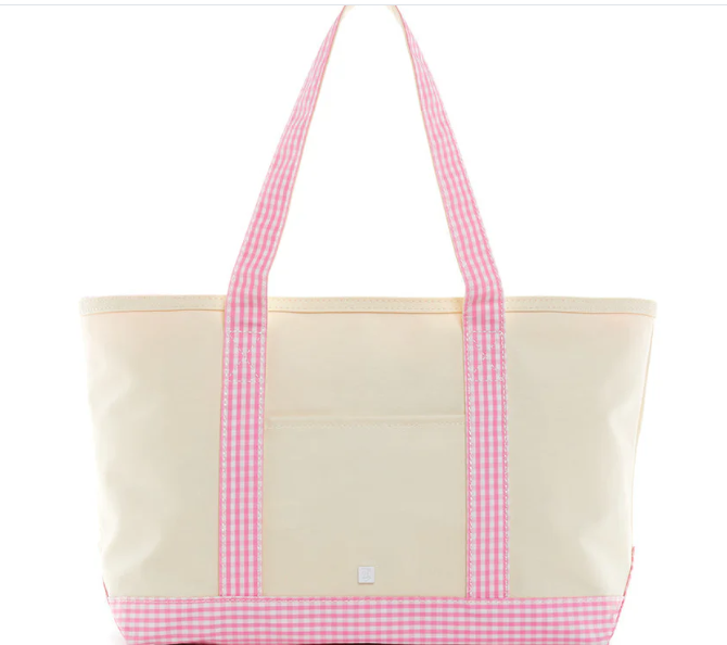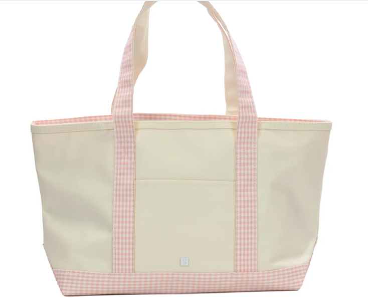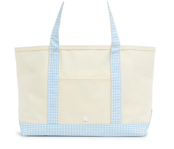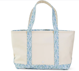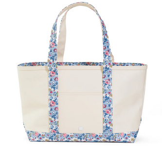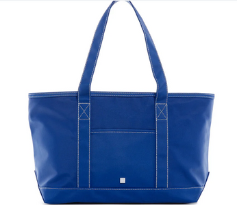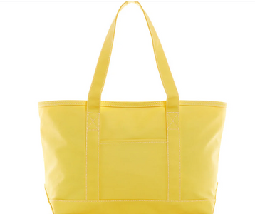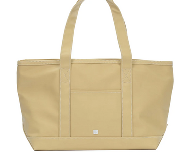 This midi tote is coated canvas and perfect for day-to-day, beach, groceries and travel. The roomy tote can carry a 17" laptop or a change of clothes. Has double shoulder strap and outside pocket.